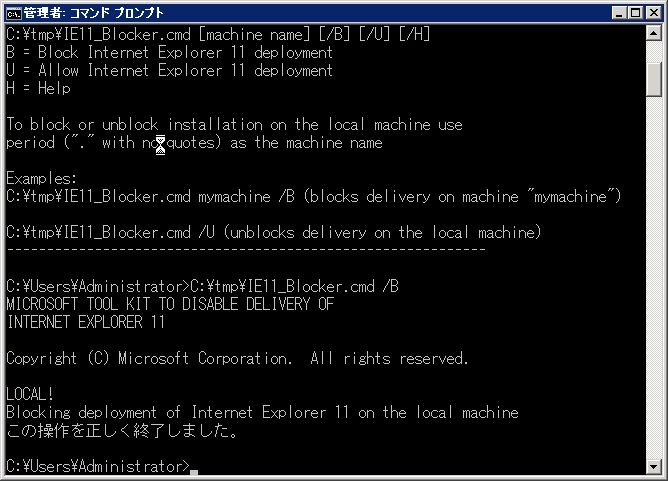 個別でインストールを無効化させるにはIE11_Blocker.cmdを実行します。