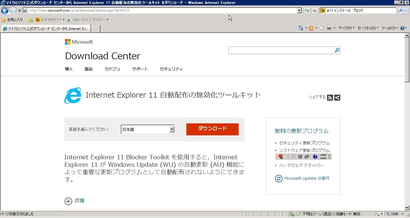 このようなIE11の自動インストールを無効化するツールがMSから提供されています。