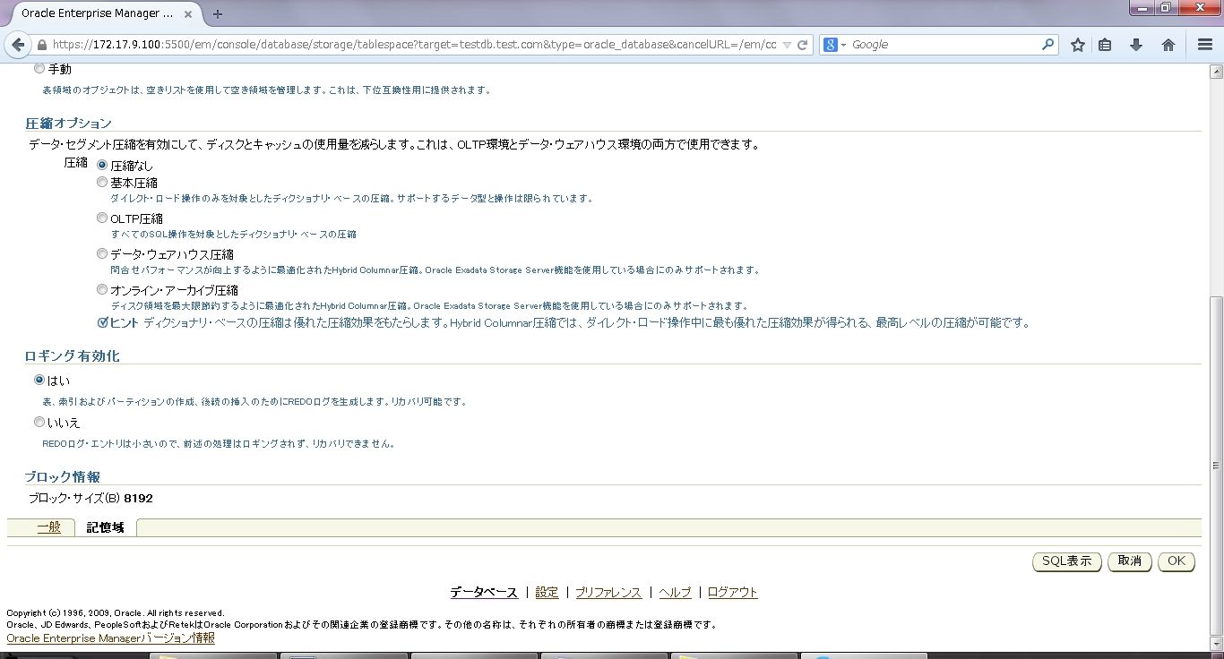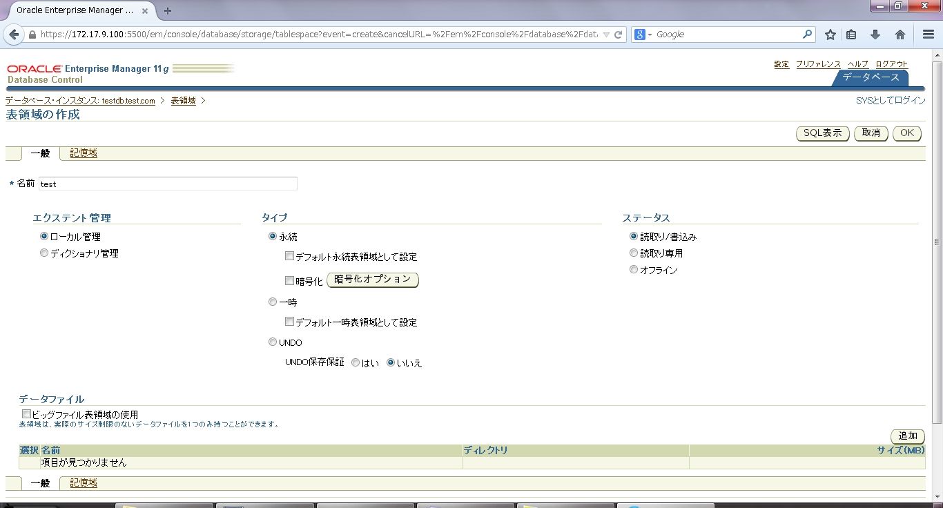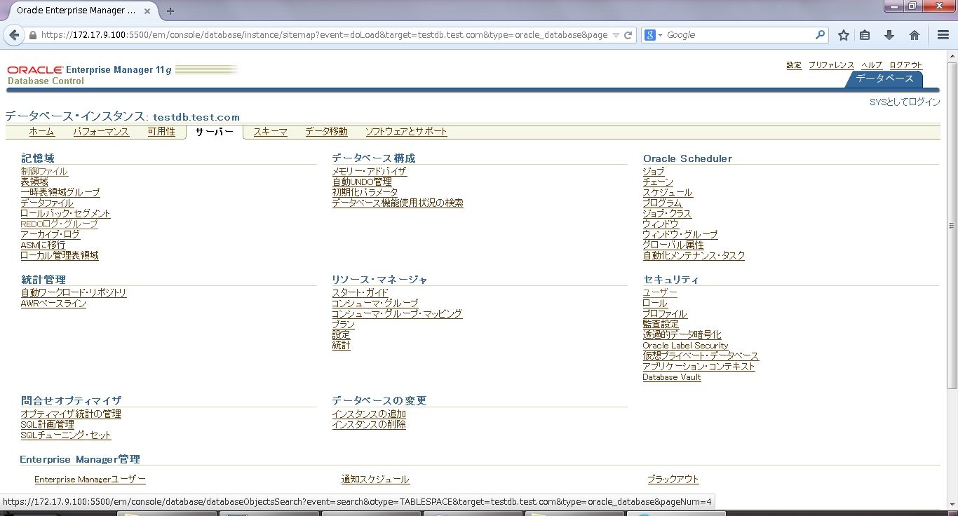 スキーマ、表領域は右の懐中電灯ボタンで検索することが出来ます。