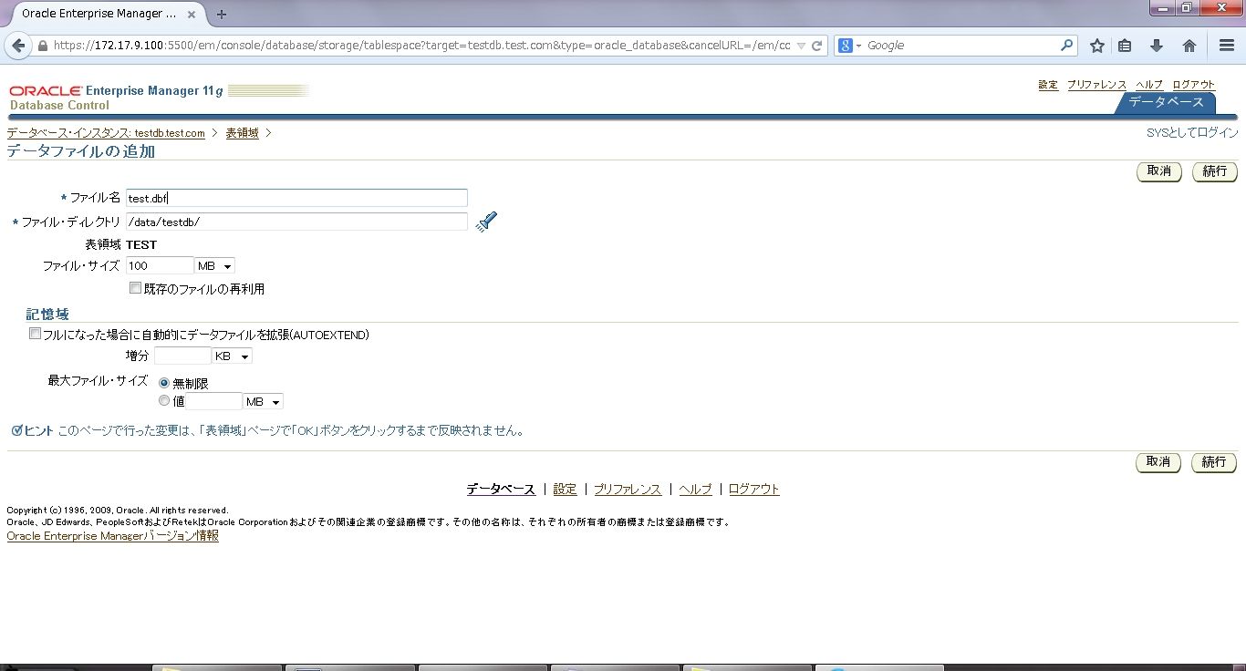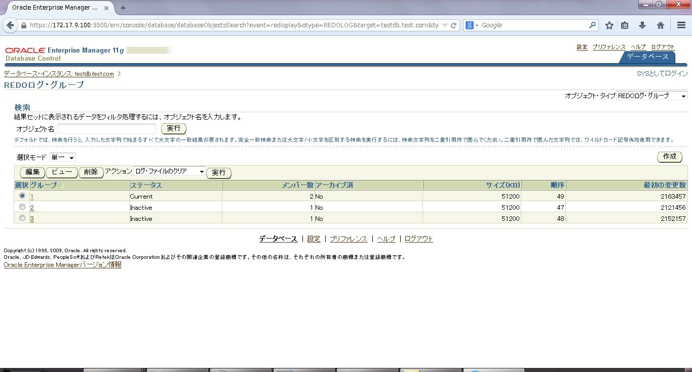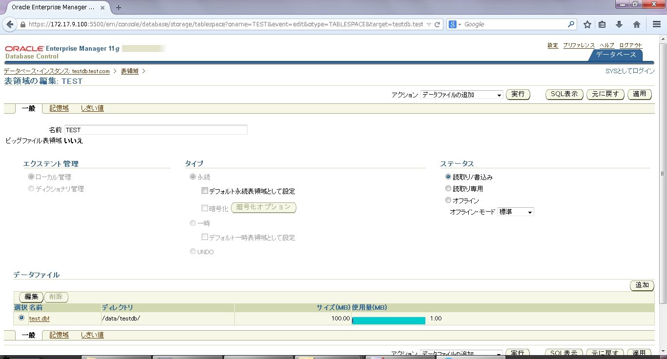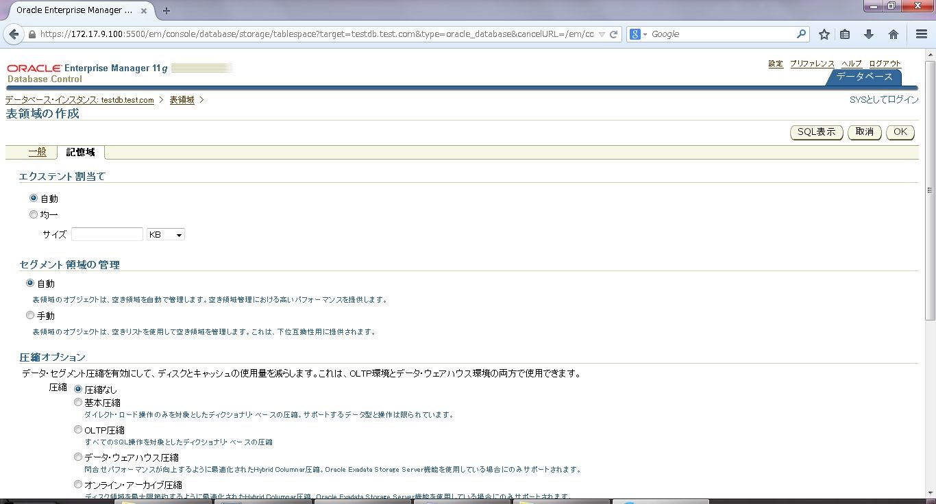 スキーマ、表領域は右の懐中電灯ボタンで検索することが出来ます。