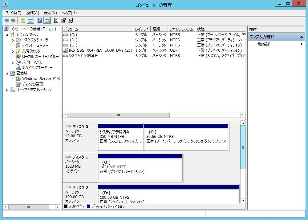 クォーラムディスクと仮想マシン格納用ディスク、両ノードでドライブ文字を合わせます。