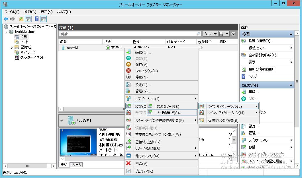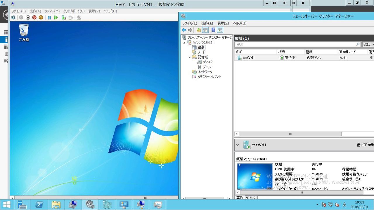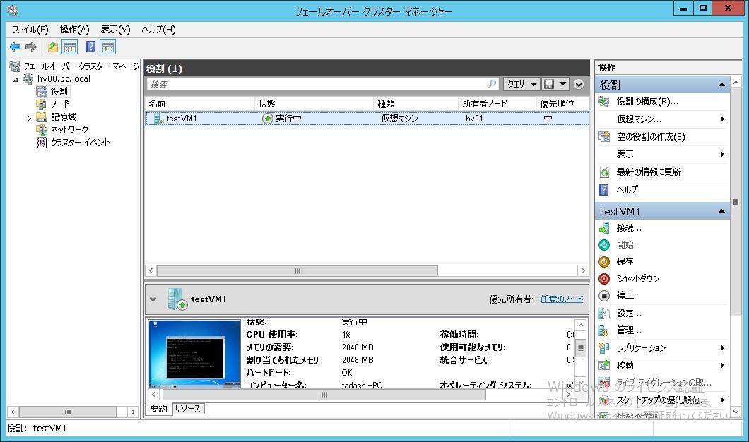 HyperVとWSFCは役割/機能追加済みです。