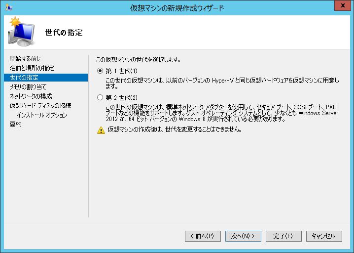 仮想マシンの世代を選択します。