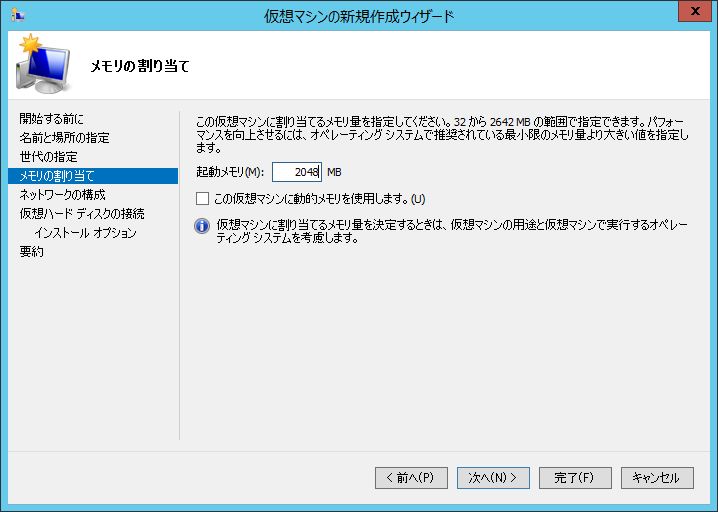 仮想マシンのメモリを指定します。