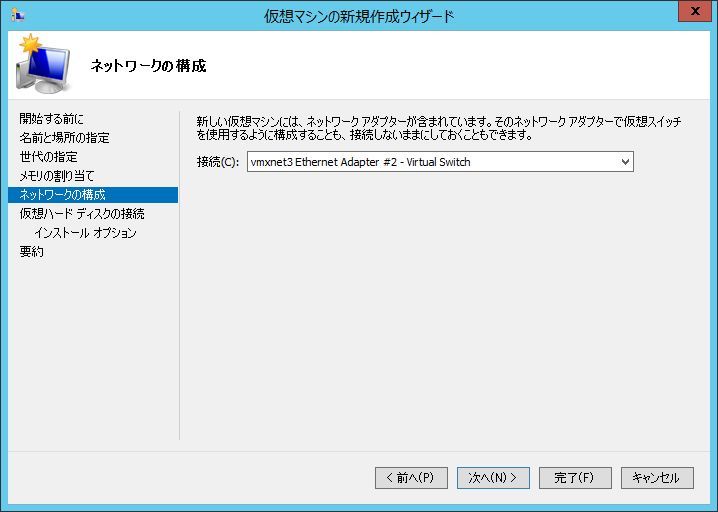 仮想マシンが接続する仮想スイッチを選択します。