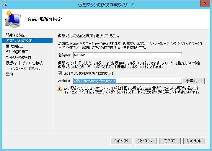 仮想マシンの場所はCドライブにCSVのリンク先があるので、そちらを選択します。