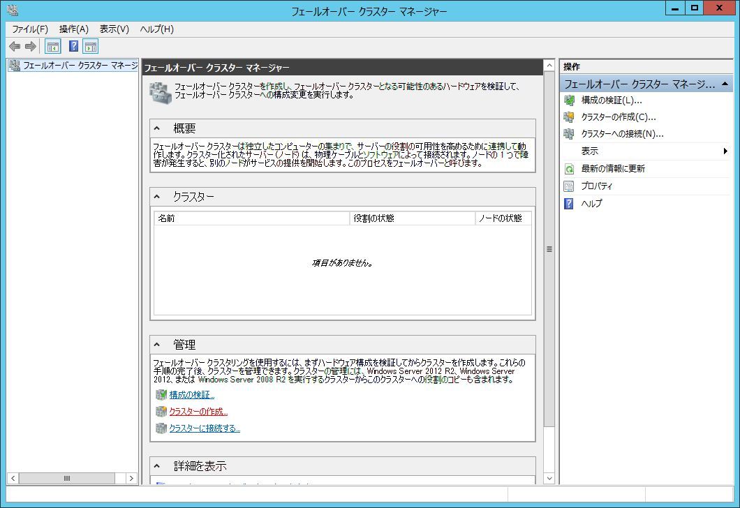 サーバーマネージャーから「フェールオーバークラスタマネージャー」を起動します。