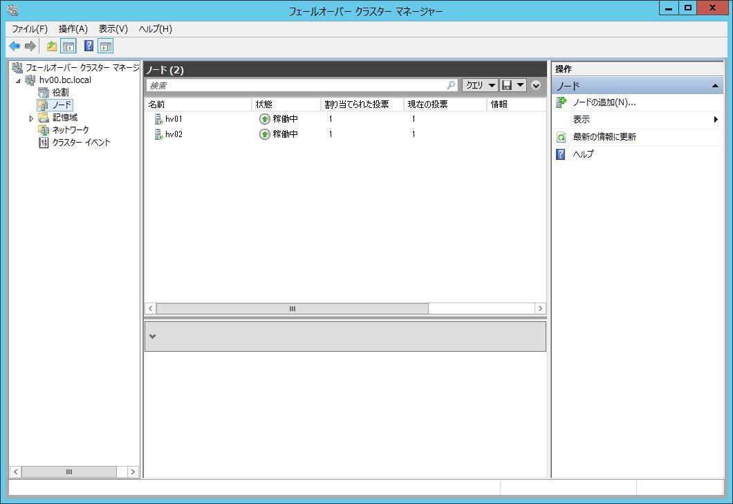 「クラスタ名」→「ノード」で、クラスタを構成するノードの状態を確認できます。