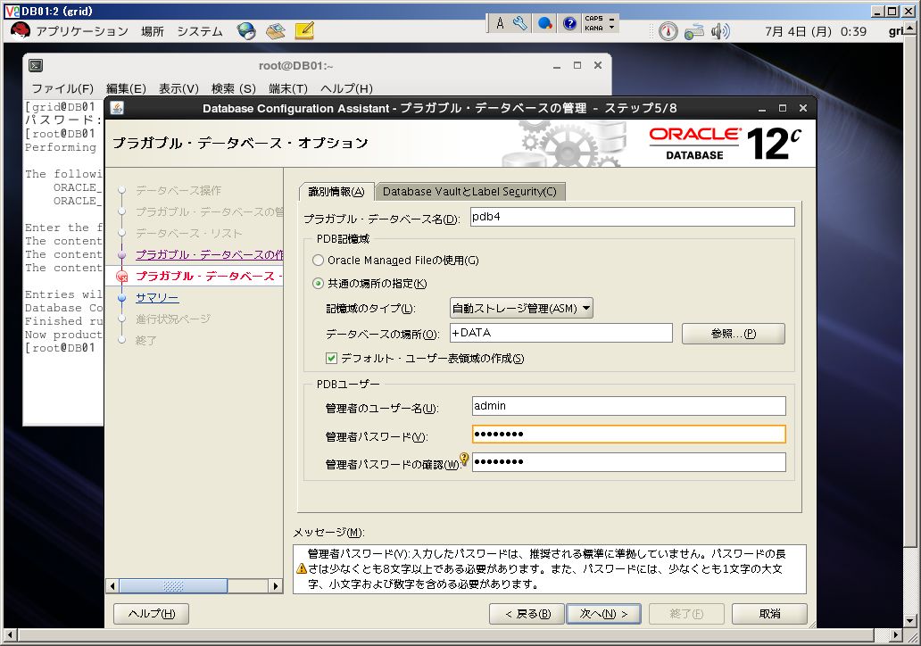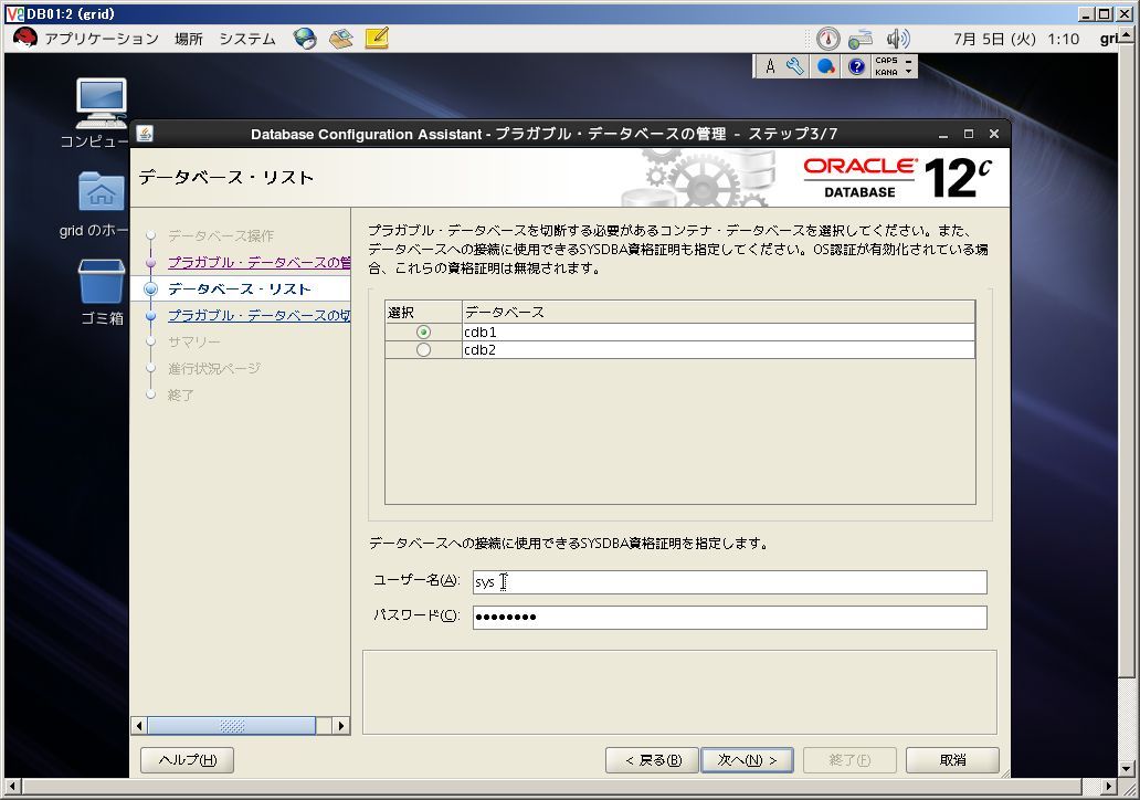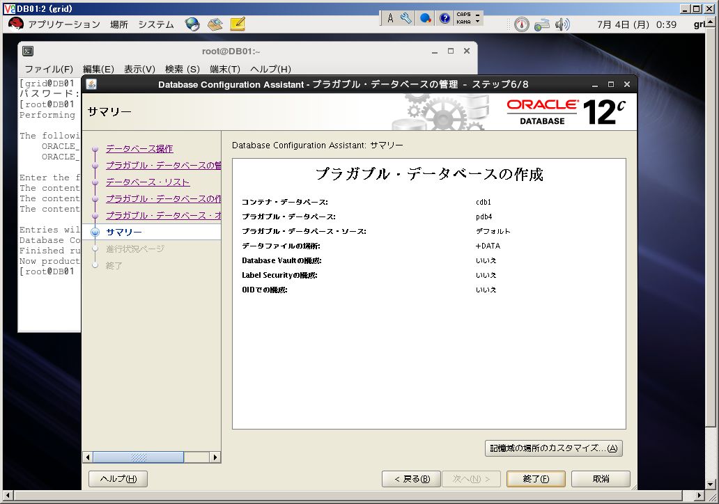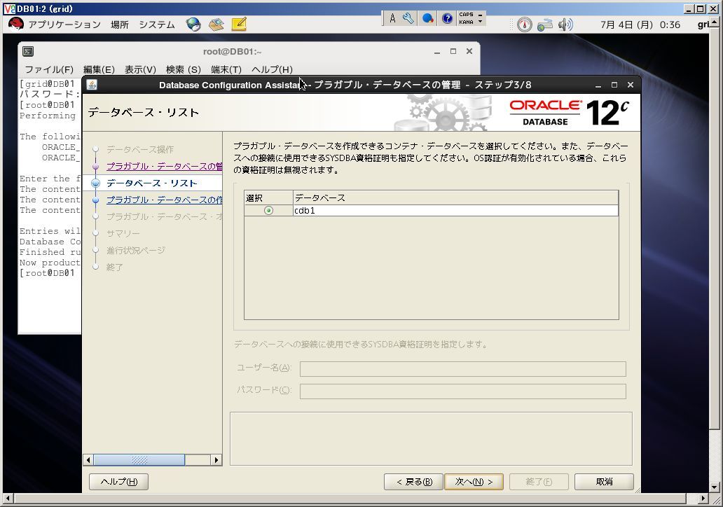 [oracle@DB01 ~]$ sqlplus sys/password@localhost/pdb1.test.local as sysdba