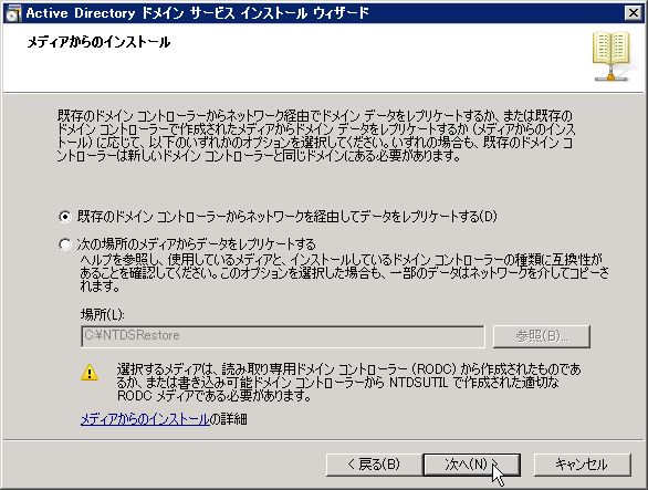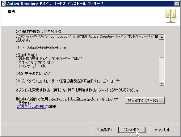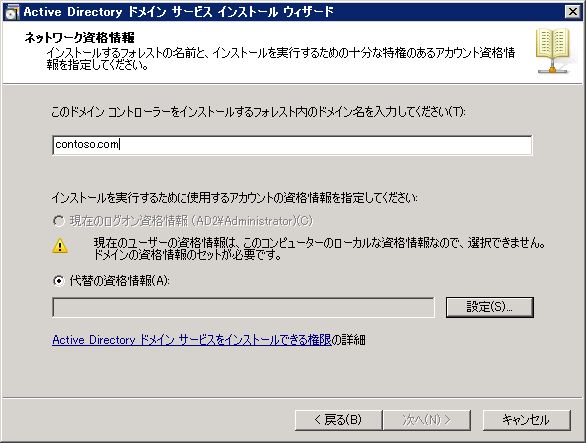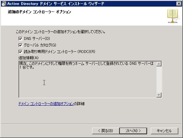 通常通り、dcpromoを起動。