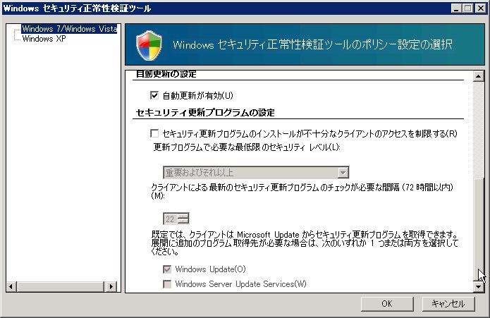 システム正常性検証ツール(SHV)ではネットワークに接続するコンピューターの構成要件を定義します。