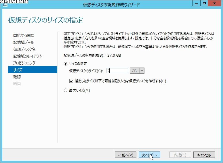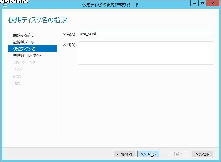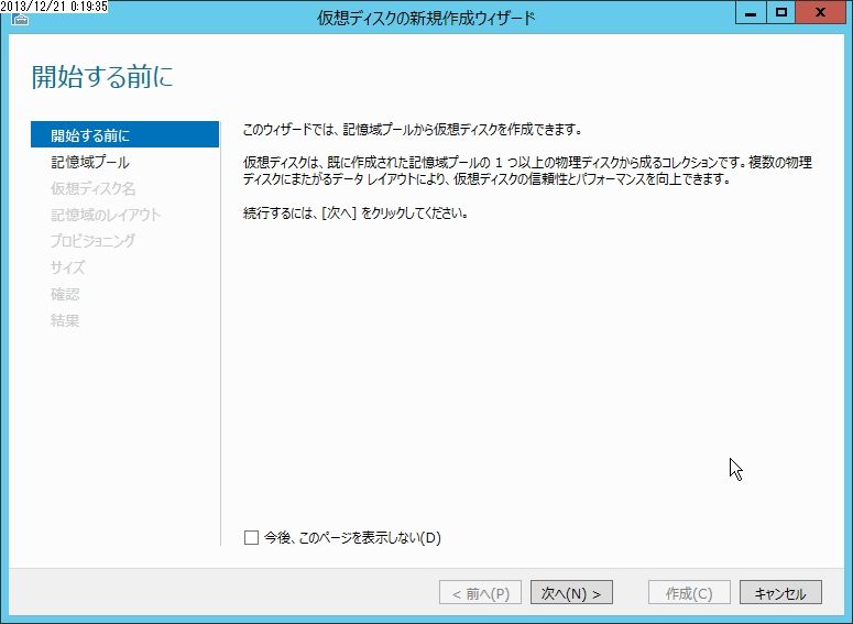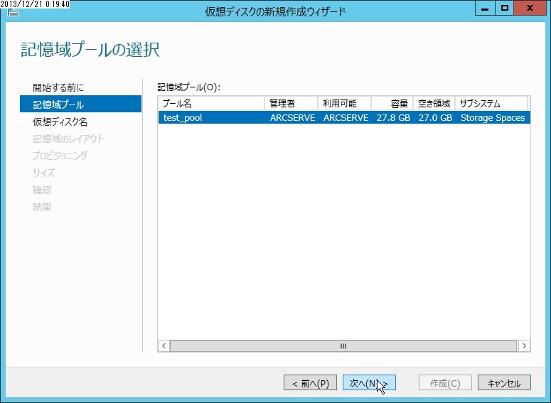前回に続いて記憶域スペースの作成です。