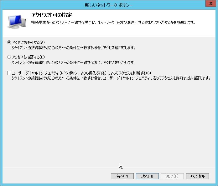ネットワークポリシーを利用することによって、リモートアクセスサーバにアクセスするユーザーを制御することが出来ます。