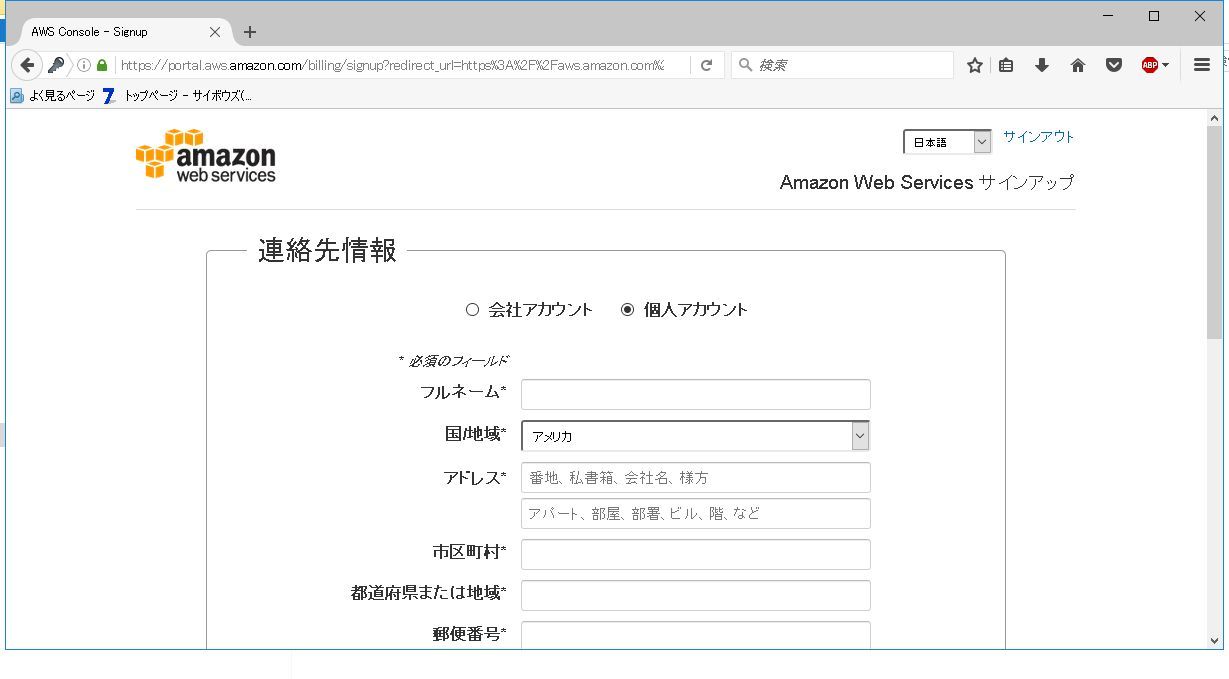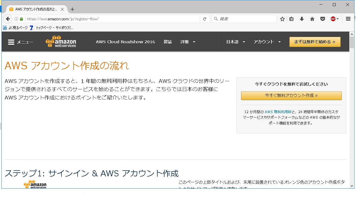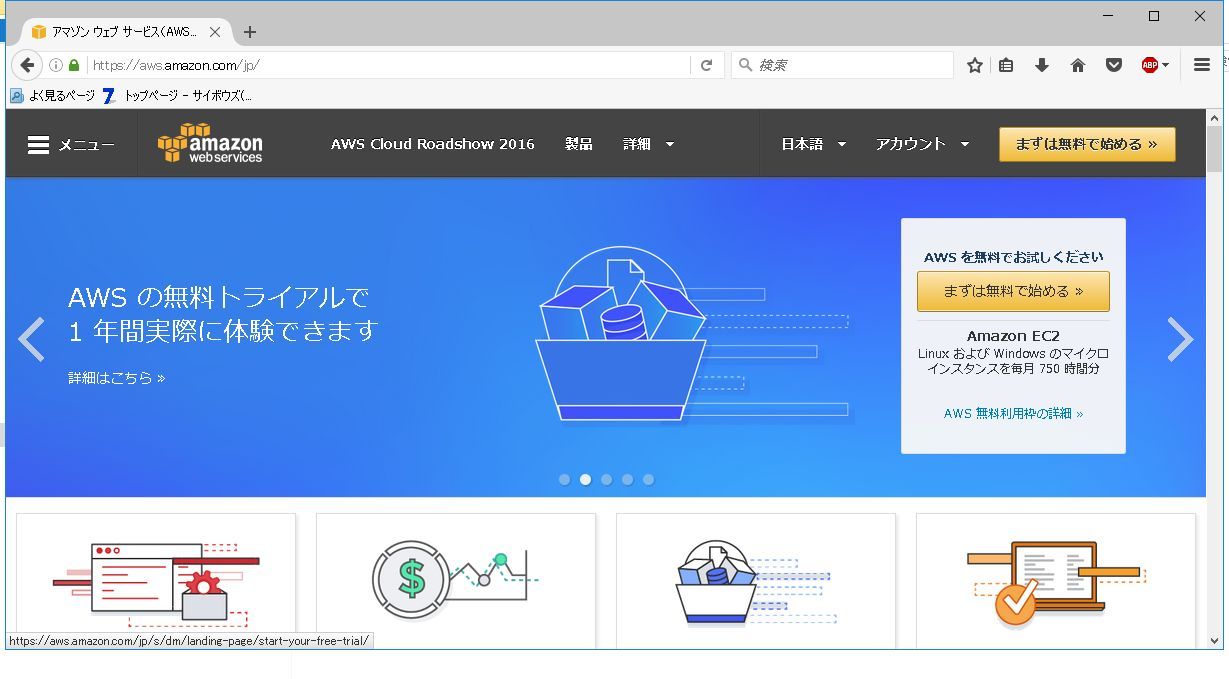 まずは、http://aws.amazon.com/jp/にアクセスします。