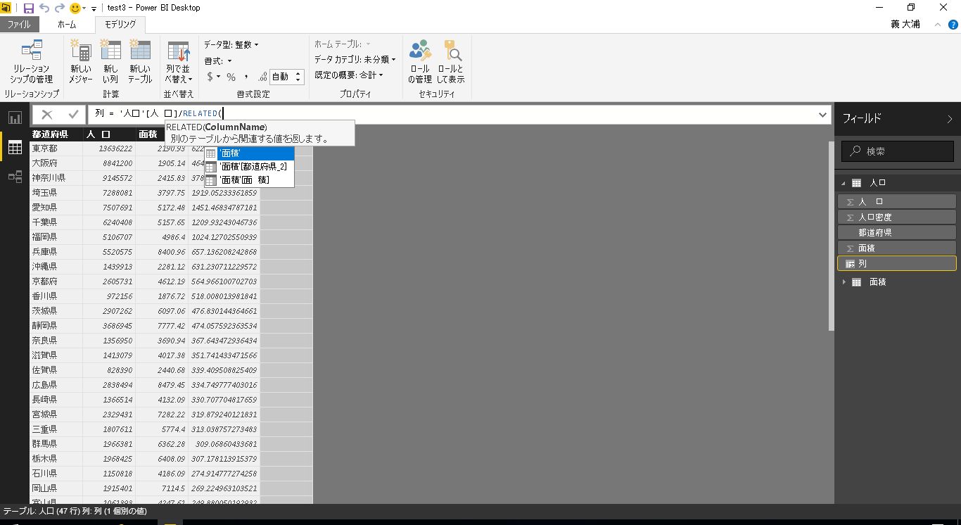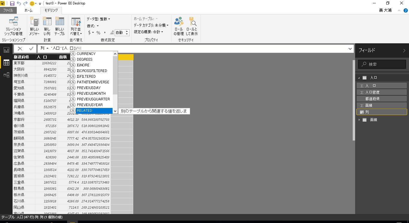 結合表の別列を計算に利用したい場合はまずRELATED関数を利用します。