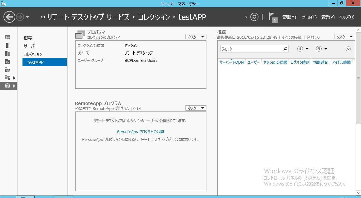 コレクションの「RemoteApp プログラムの公開」リンクをクリックします。
