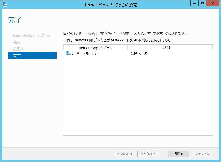作成したコレクションに対してRemoteAppプログラムを公開します。