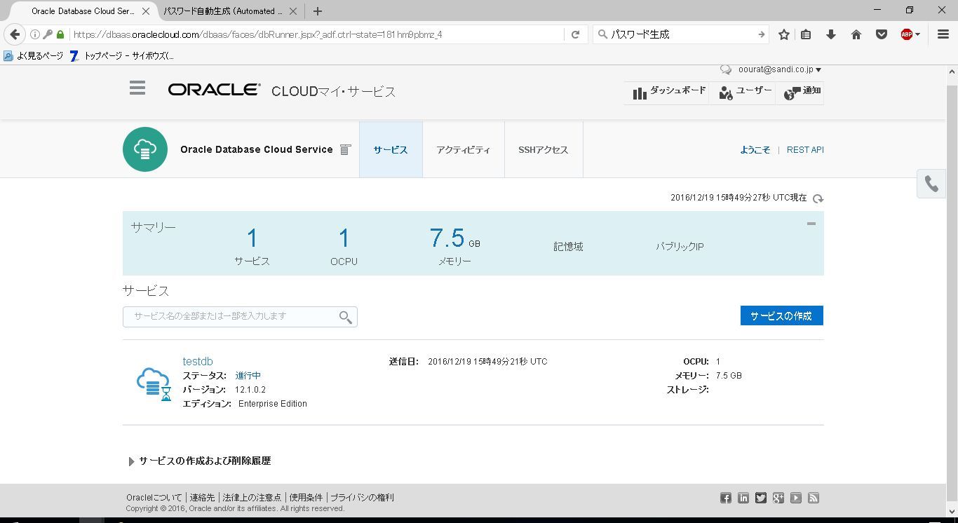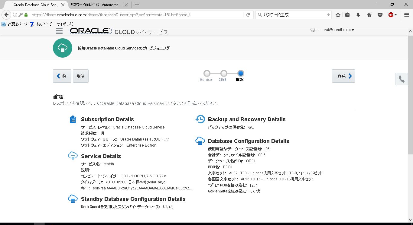 Oracle Cloudでデータベース1~インスタンスの作成