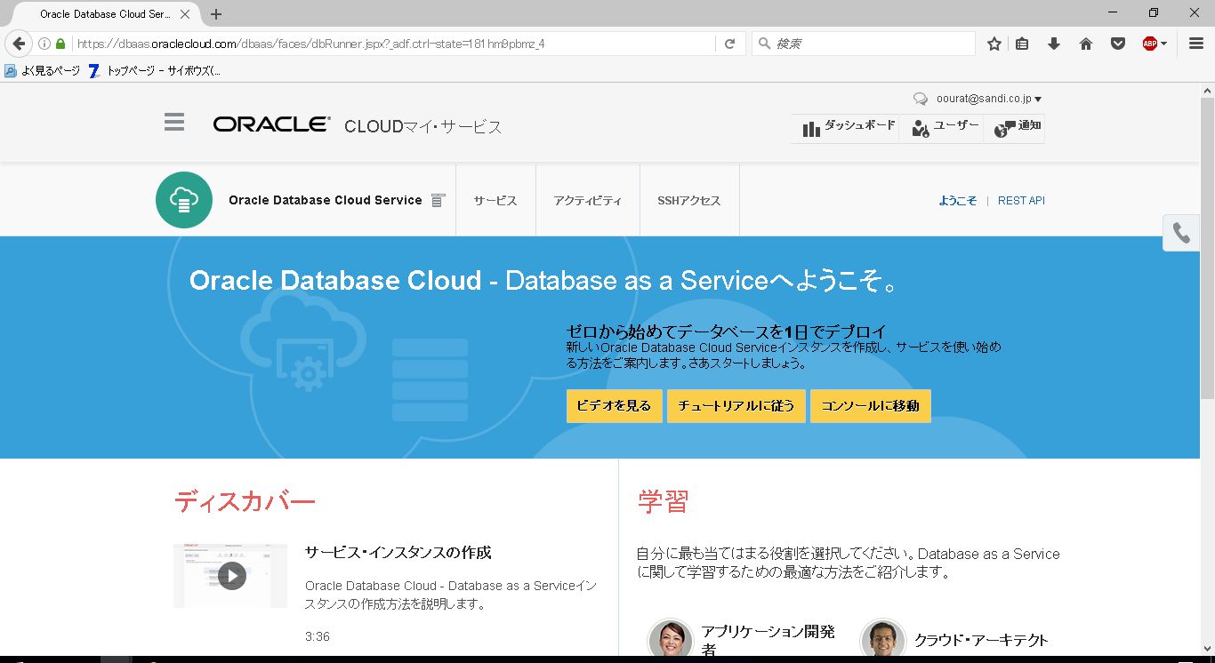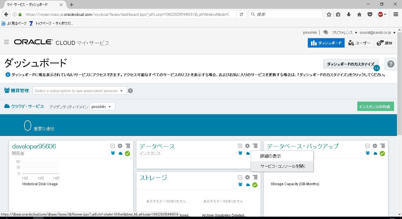 データベースサービスのサービスコンソールが開きました。