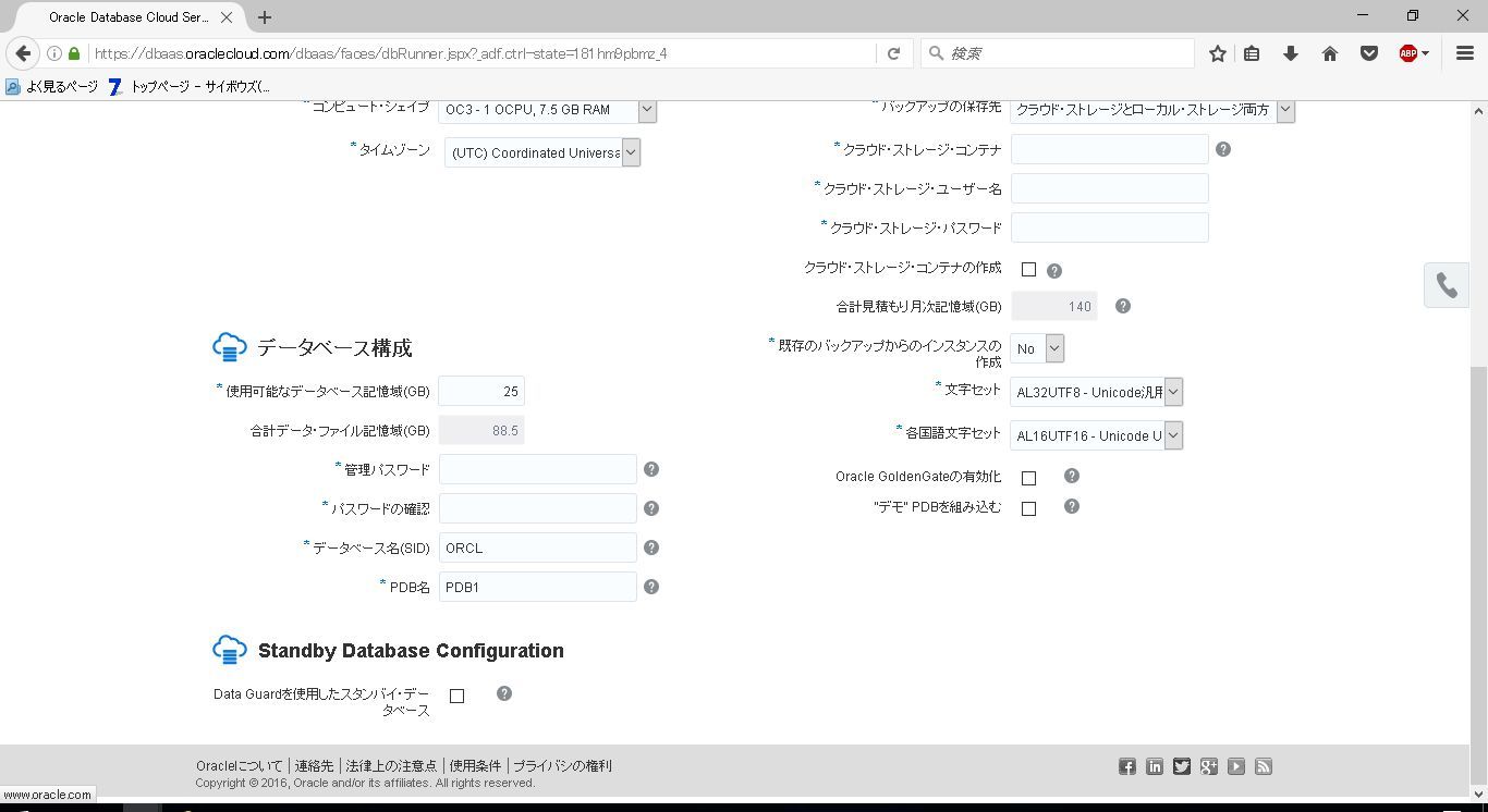 仮想マシンのスペック、インスタンス名、Standby DBの有無、バックアップの有無を選択します。
